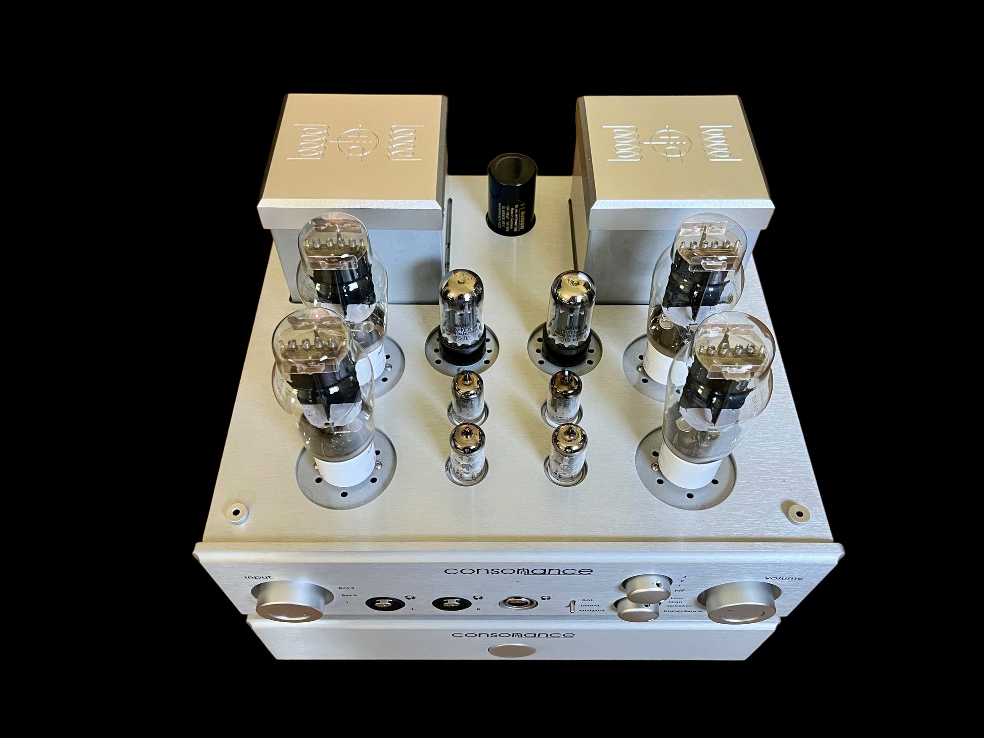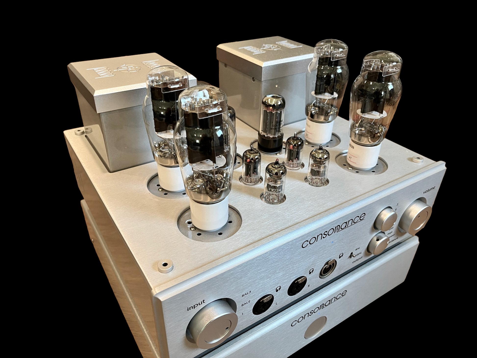 The Consonance LinearQ is an integrated tube headphone and speaker amplifier that features differential architecture, fully balanced, with a push-pull output stage and a hybrid tube rectifier power supply. The amplifier is designed around two pairs of direct-heated 2A3 triode tubes operating in push-pull configuration. The specially-designed output transformers ensure optimal impedance matching, making it easy to drive headphones from a variety of brands without any strain. A selector switch matches the output for low or high impedence headphones. Additionally, a set of speaker output terminals allows this high-quality 8 watt class-A integrated amplifier to be paired with high-sensitivity loudspeakers. There are three negative feedback settings, providing listener control depending on taste, type of music, and headphone or speaker types.