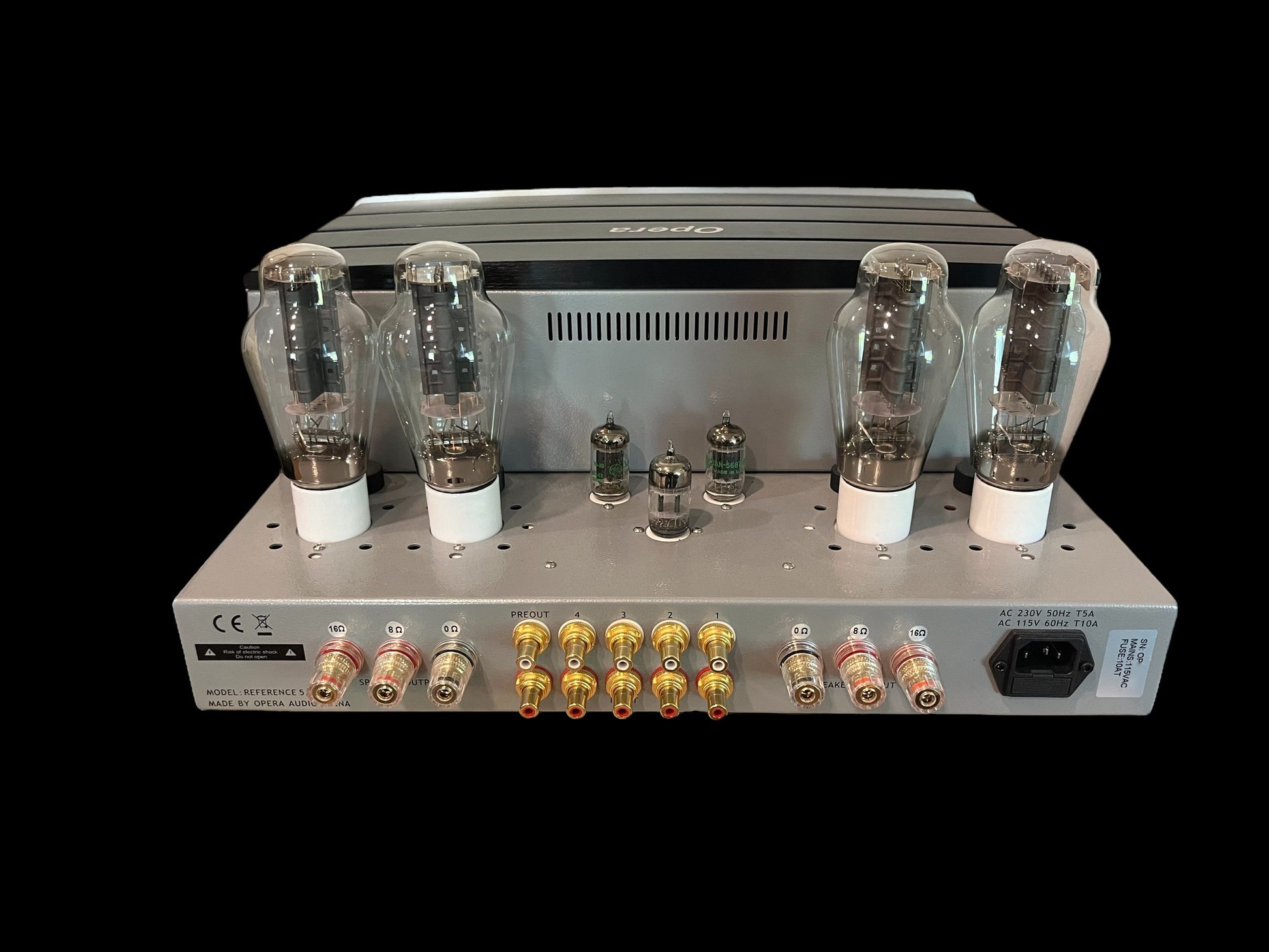 The Consonance Reference5.5 MKII is a limited edition amplifier made by Opera Audio, developed around the legendary 300B power tube with custom output transformers utilizing 8 and 16 ohm taps for modern as well as vintage loudspeakers.
